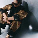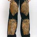 Cada paso deja una huella. El pantalón LA INMERSIÓN transforma el denim en una pieza de arte contemporáneo, donde el dorado se convierte en símbolo de identidad y poder.