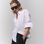Camisa en algodón, de silueta amplia y caída relajada. Su textura suave y natural equilibra comodidad y estilo. Un básico elevado, pensado para usarse abierta, cerrada o incluso como sobrecamisa.
