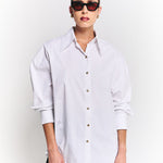 Camisa oversized en algodón, de silueta amplia y caída relajada. Su textura suave y natural equilibra comodidad y estilo. Un básico elevado, pensado para usarse abierta, cerrada o incluso como sobrecamisa.