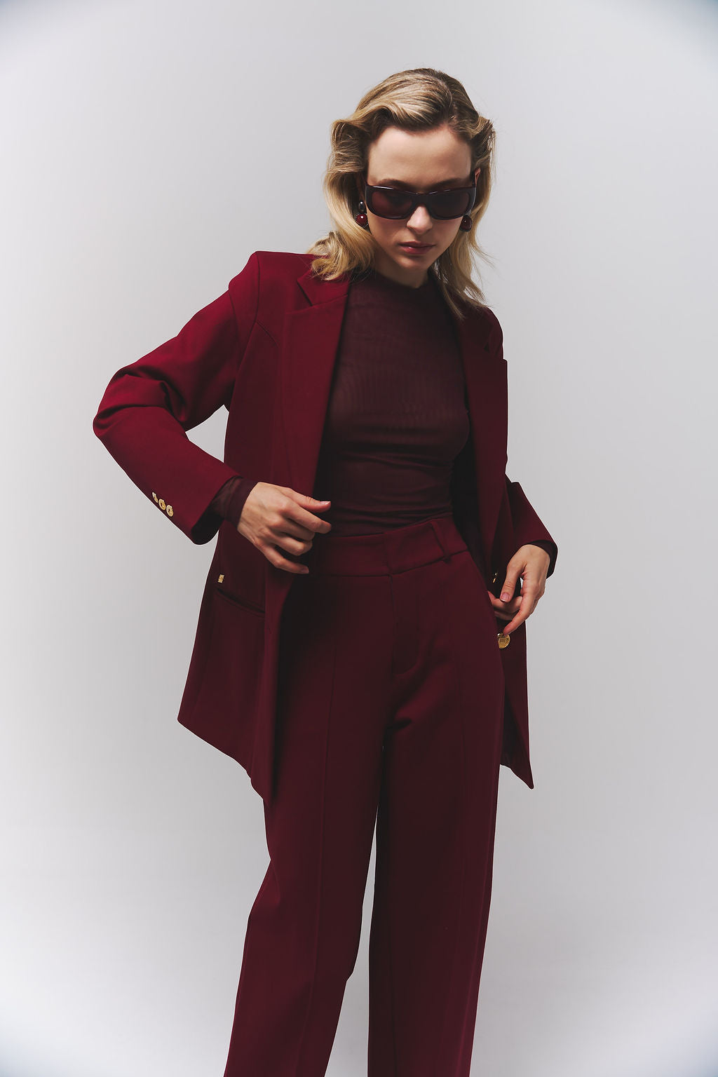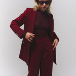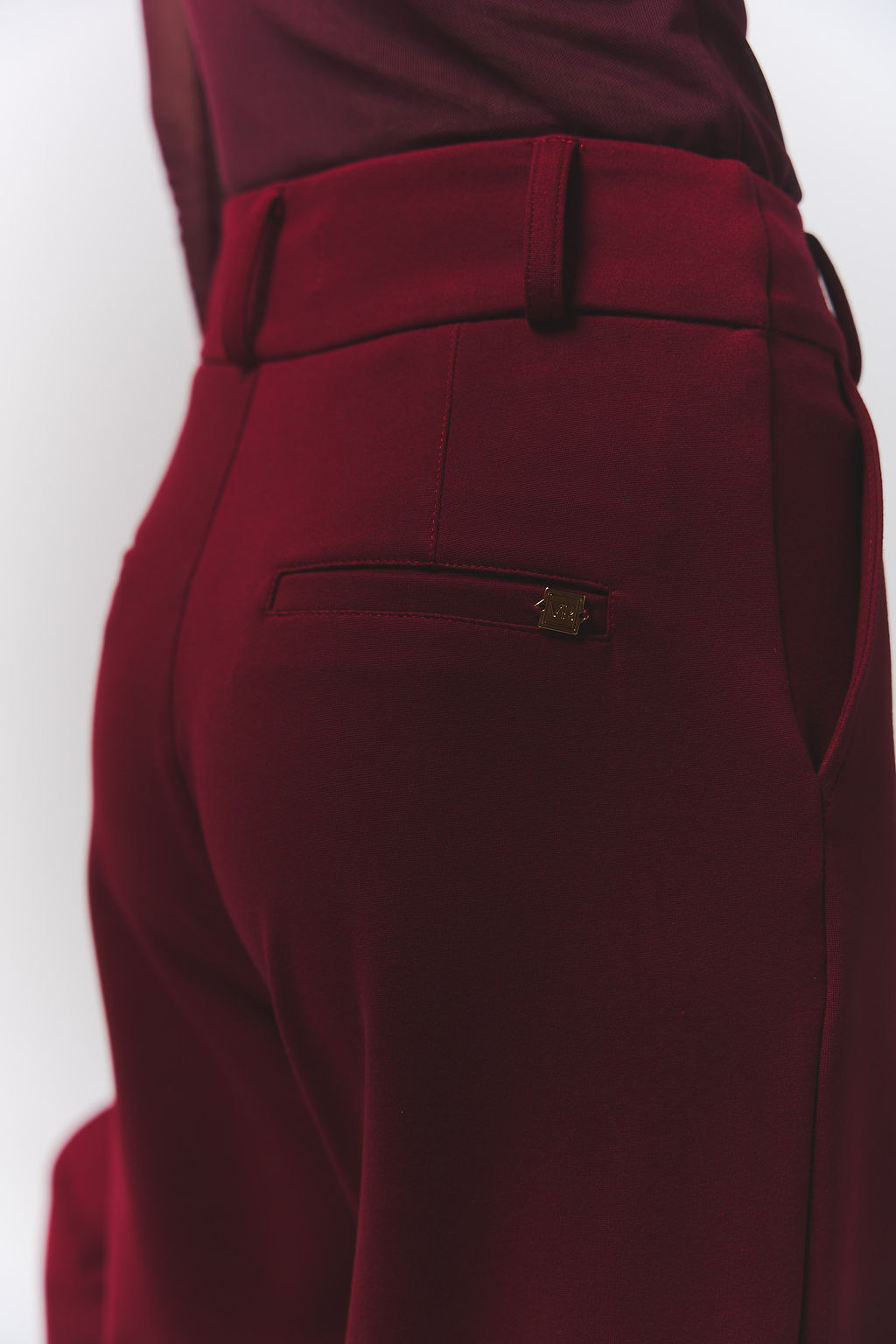 Pantalón Burgundy de tiro alto con caída impecable y presencia absoluta.